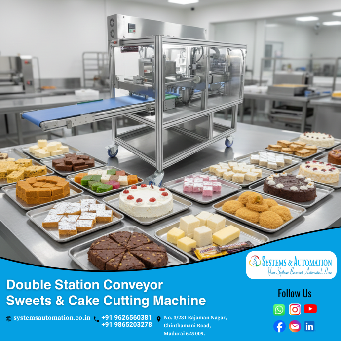 08. Double Station Conveyor Sweets & Cake Cutting Machine